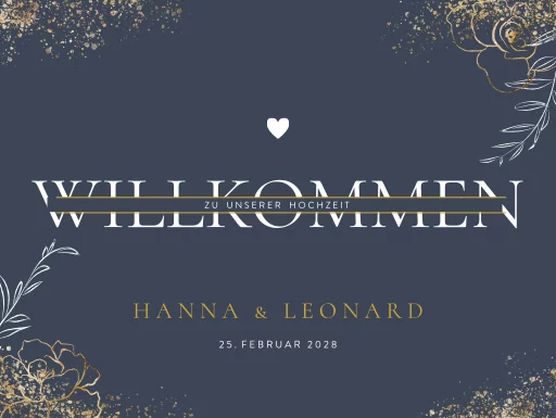 Auf eurer Hochzeit möchtet ihr eure Gäste natürlich auf angemessene Weise begrüßen. Platziert dieses schöne Schild im Stil eurer Hochzeitspapeterie am Eingang eurer Location und eure Gäste wissen sofort, dass sie am richtigen Ort sind. Dieses Schild hat eine Größe von 80x60 cm.Alle wichtigen Informationen zu unseren Schildern findest du hier.