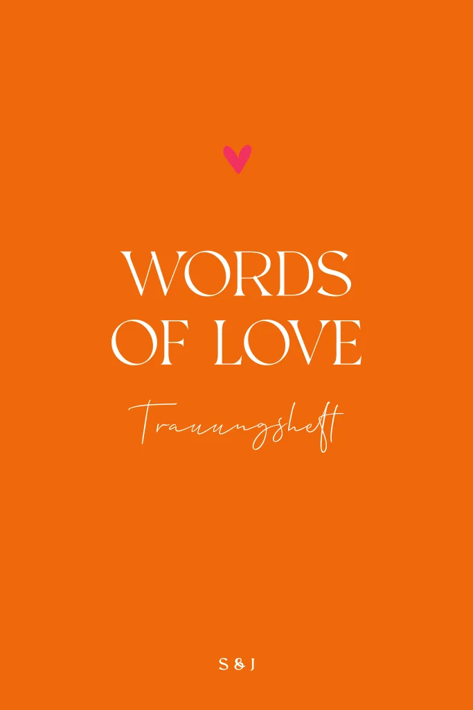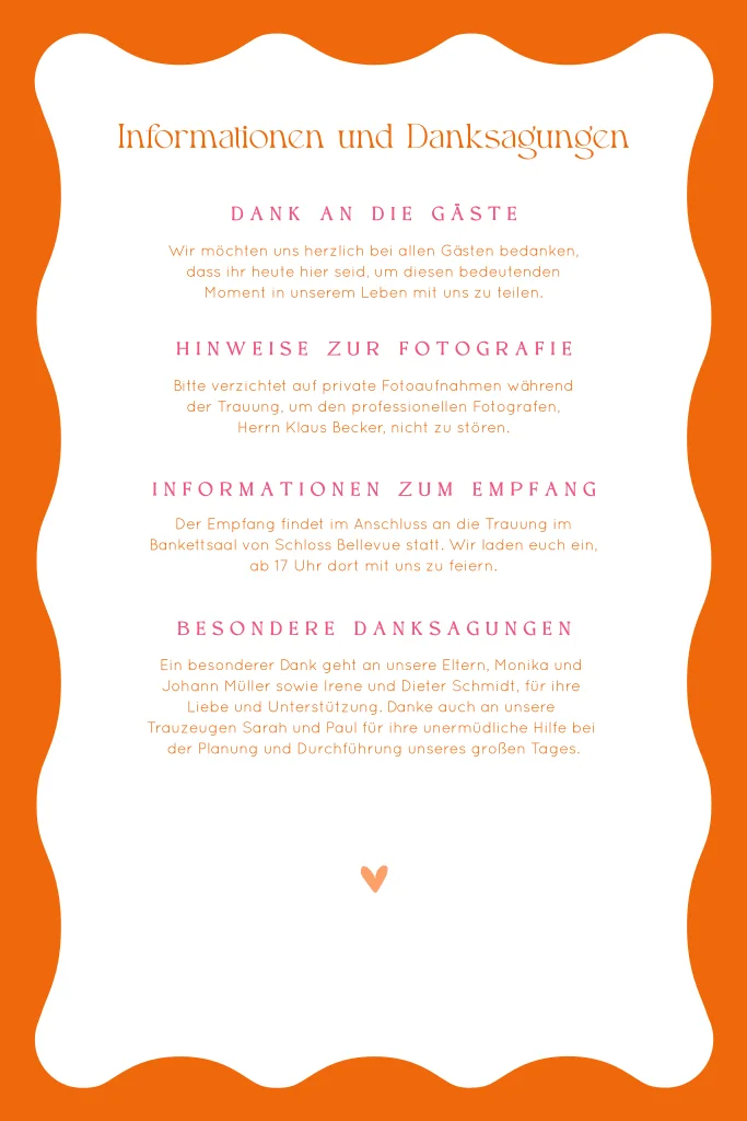Sommerliches Trauungsheft in Orange mit Herzchen und welligem Rahmen