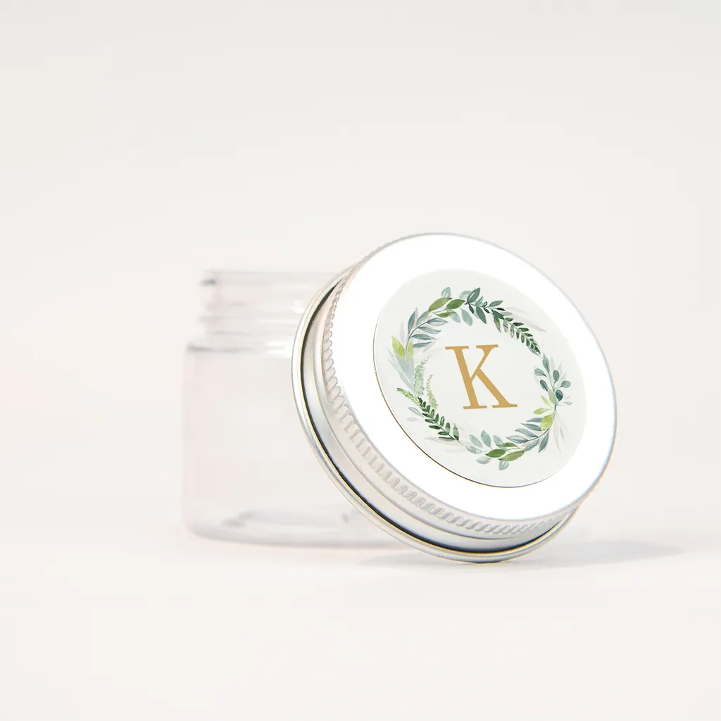 Runder Aufkleber zur Kommunion mit Ring aus Blätterzweigen und Initiale ø 35 mm - 25 Stück