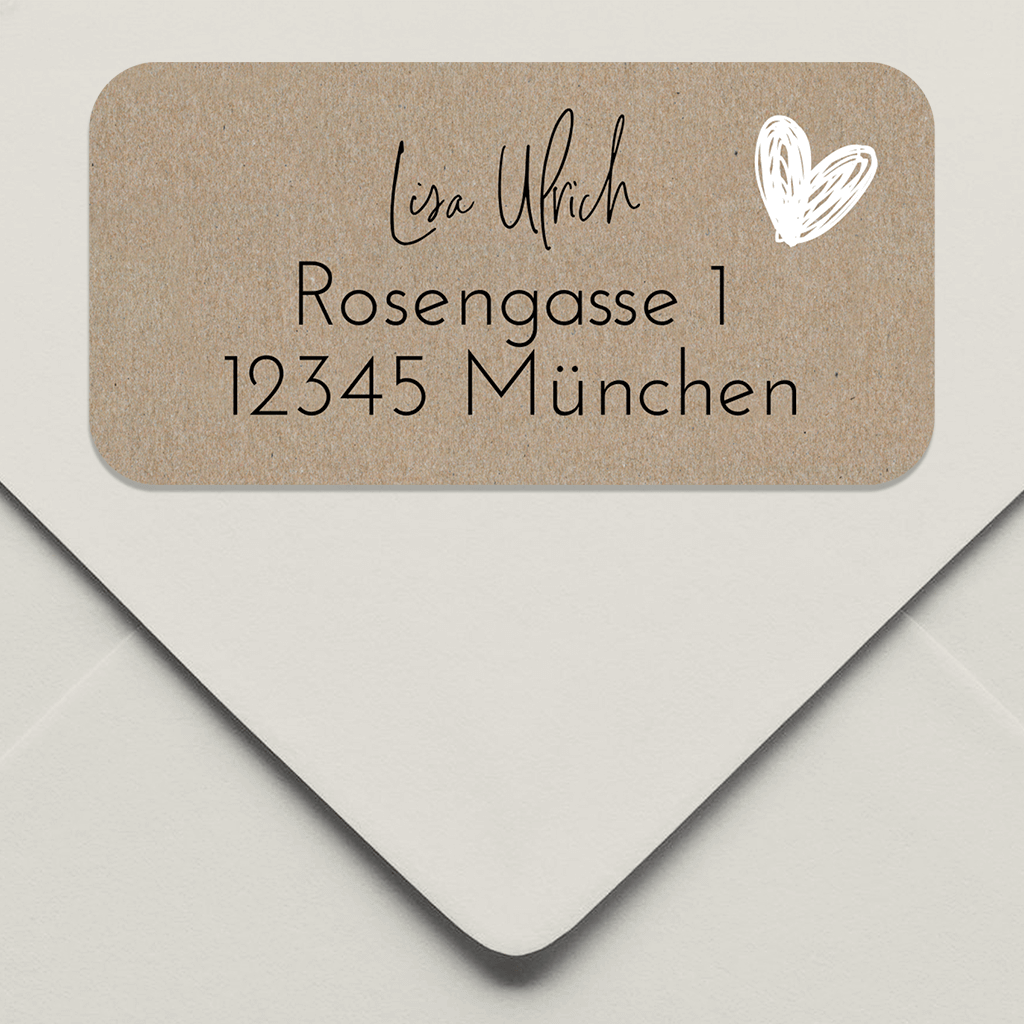 Absenderaufkleber Kommunion Kraft-Look mit zierlicher Schrift und Herz 50x25 mm 14 Stück