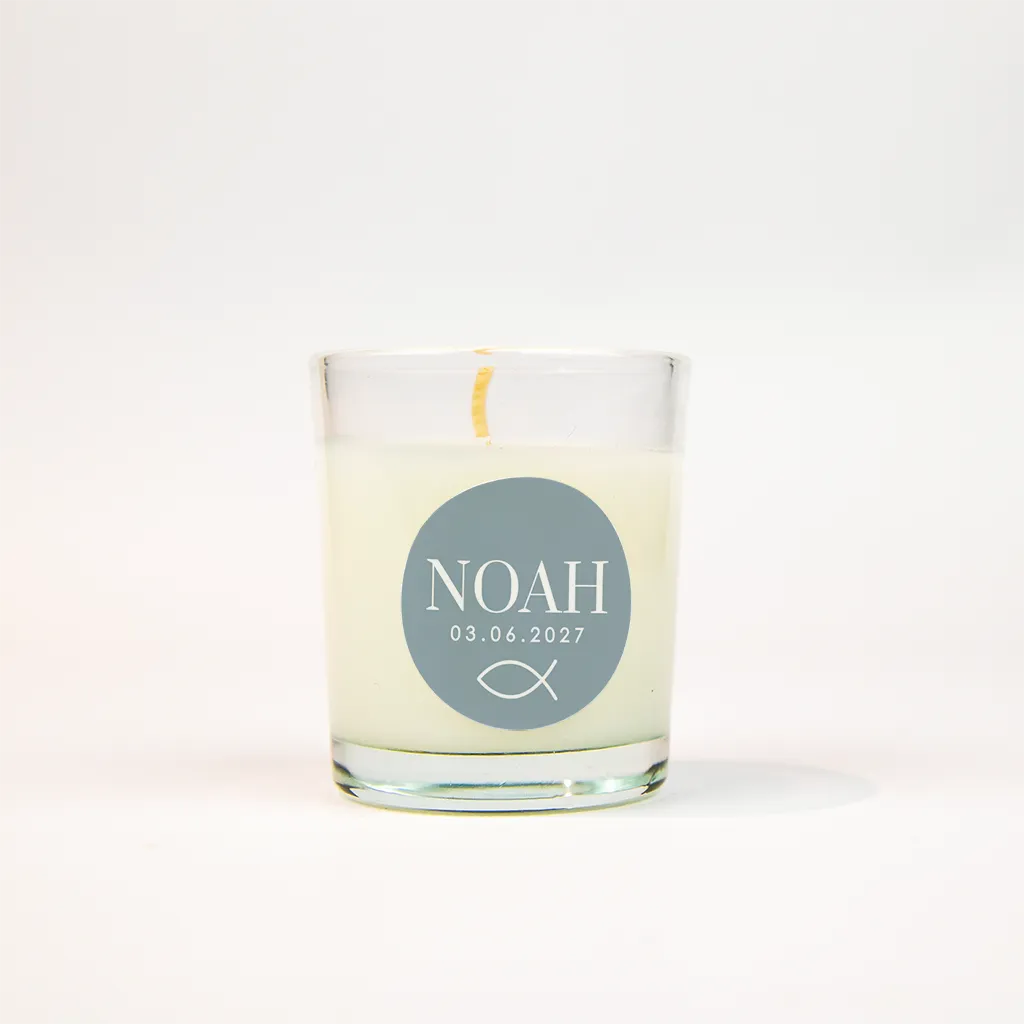 Runder Aufkleber zur Konfirmation in Blau mit weißem Fisch