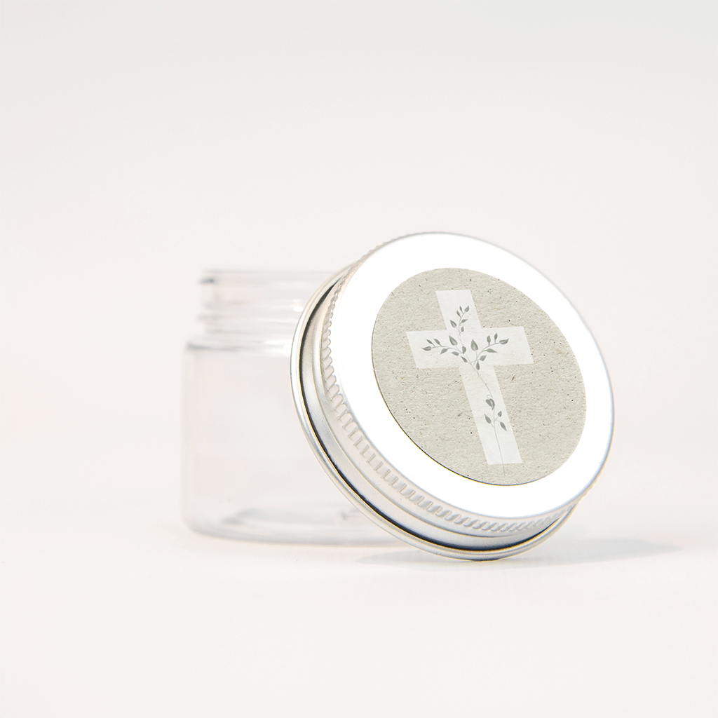 Passendes Verschlusssiegel zur Kommunionskarte mit Kreuz und Blättern.
