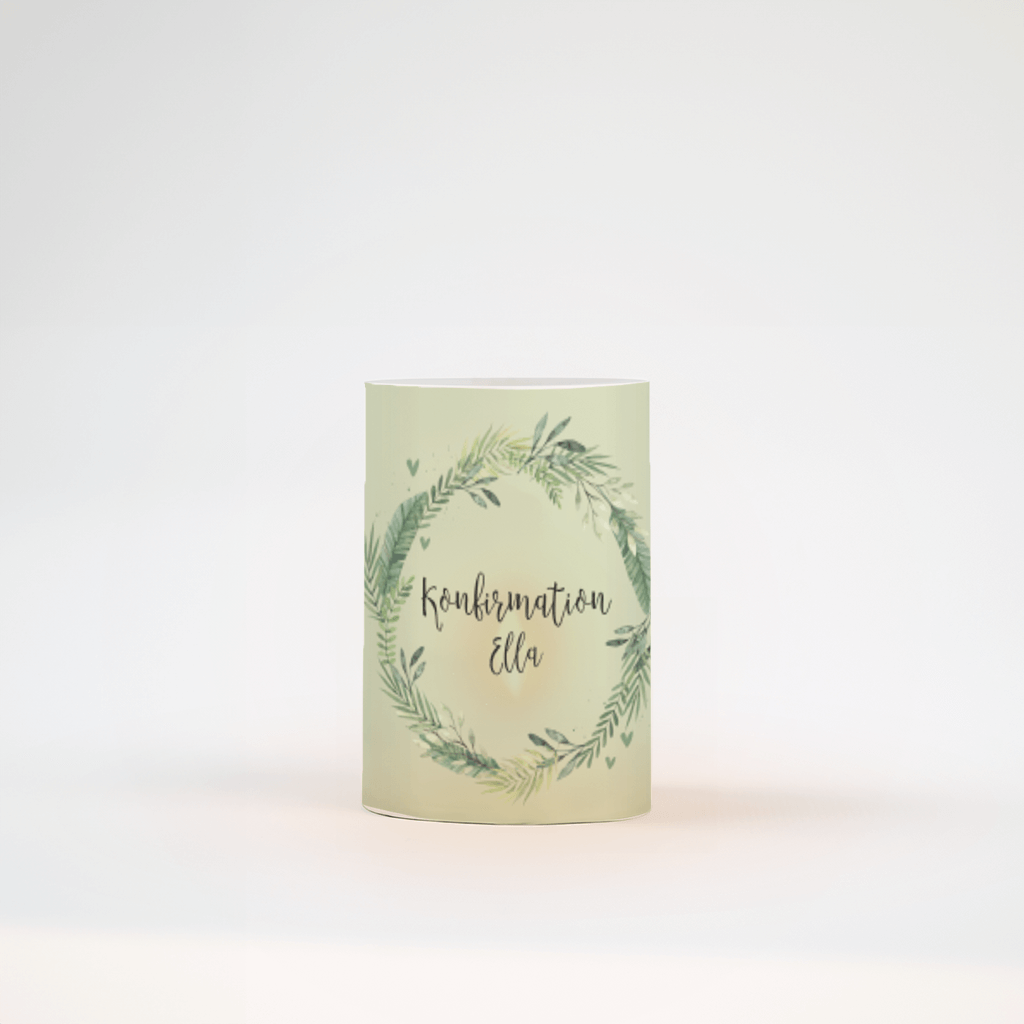 Windlicht mit Kranz und Herzchen zur Konfirmation