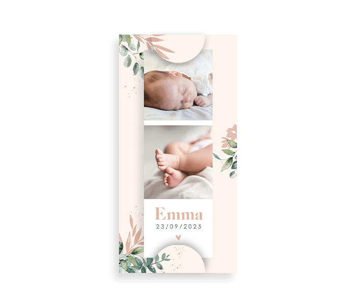 Süße Babykarte zur Geburt mit Foto.Durch den Zuschnitt der Karten können 1-3mm Breitenunterschied (links/rechts und oben/unten) am Rahmen auftreten. Tipp: Gestalte den Rand so groß wie möglich, damit dieser mögliche Unterschied nicht auffällt.