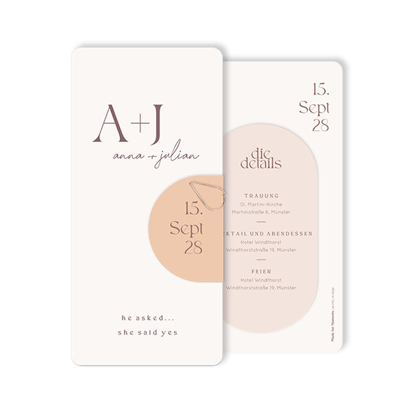 Hochzeitskarten-Set mit verschiedenen Formen und in dezenten Farbtönen. Dieses Design ist perfekt für Paare, die nach einer stilvollen und schlichten Einladung suchen.