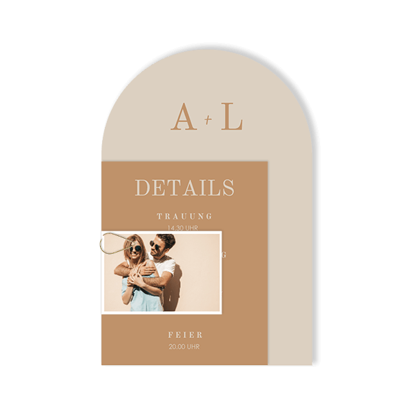 Elegantes Kartenset Hochzeit mit nude Karte in Bogenform und Foto