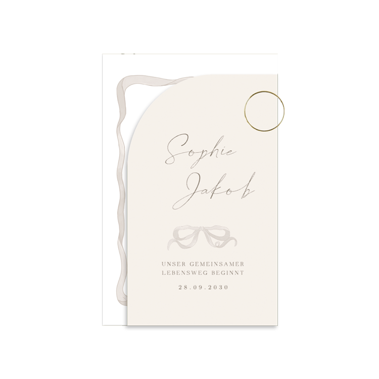 Sieh dir hier all unsere Hochzeitseinladungen mit Schleifen an.