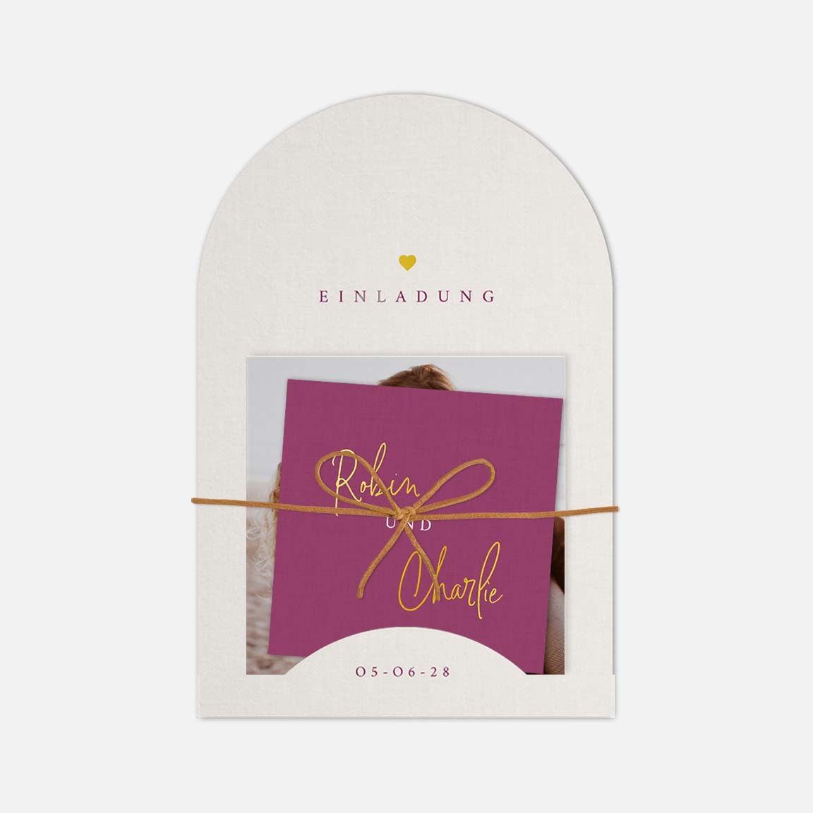 Hochzeitseinladung als Set in Halbbogenform mit Foto. Dieses Design ist perfekt für Paare, die nach einer stilvollen und schlichten Einladung suchen.