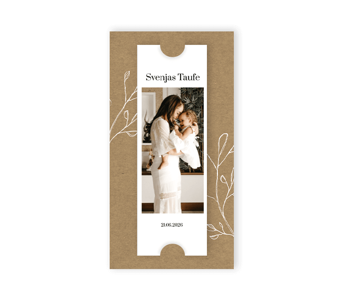 Die Taufe Duo Dankeskarte mit Foto im Polaroid-Look ist eine schöne und praktische Karte, um sich bei Freunden und Familie für ihre Teilnahme an der Taufzeremonie zu bedanken. Die Karte besteht aus zwei Teilen: einer großen Karte und einer kleinen Karte.Durch den Zuschnitt der Karten können 1-3mm Breitenunterschied (links/rechts und oben/unten) am Rahmen auftreten. Tipp: Gestalte den Rand so groß wie möglich, damit dieser mögliche Unterschied nicht auffällt.