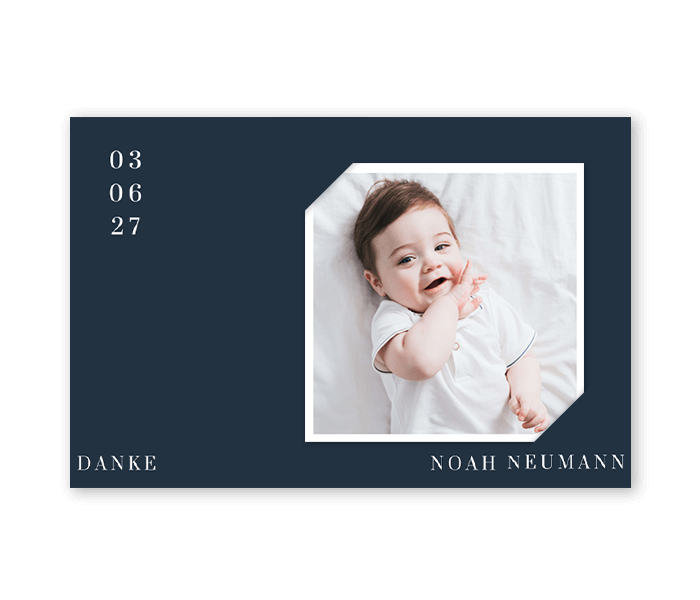 Elegante Dankeskarte in dunkelblau zur Taufe mit extra Foto