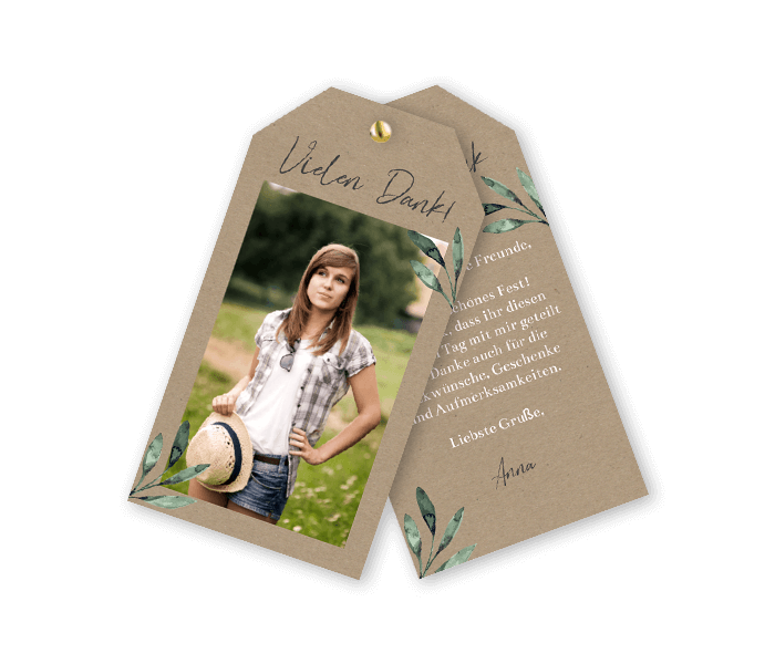 Danksagung zur Jugendweihe im Kraft-Look mit Foto und Eukalyptus