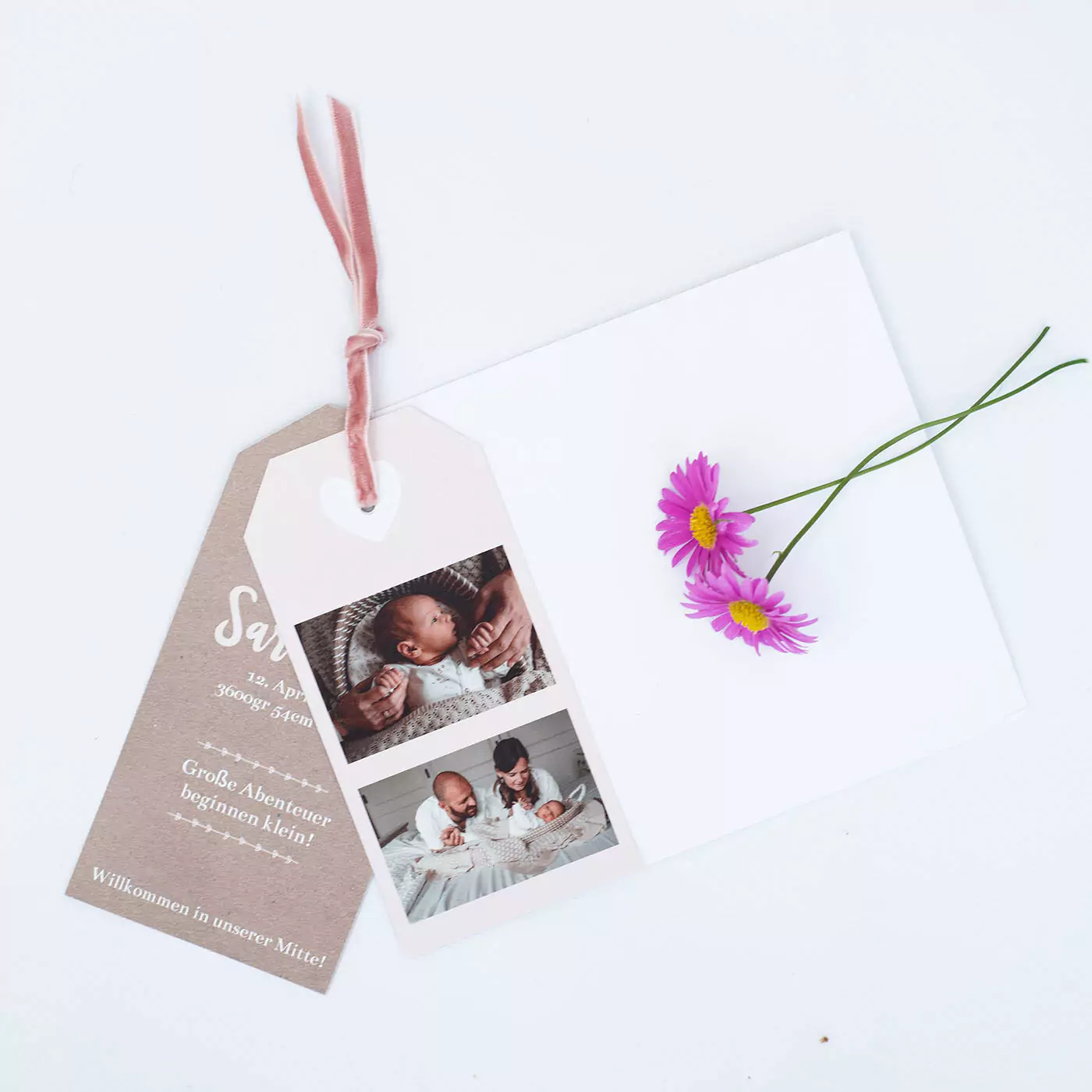 Die Geburt des eigenen Kindes ist einer der schönsten Momente im Leben vieler Menschen. Um diesen Anlass gebührend zu feiern und diese wunderschöne Nachricht zu verkünden, eignen sich auch personalisierte Labelkarten perfekt, denn mit einer liebevoll gestalteten Botschaft drückt ihr nicht nur die Zuneigung zu eurem Baby aus, sondern auch die Wertschätzung gegenüber dem Empfänger.Durch den Zuschnitt der Karten können 1-3mm Breitenunterschied (links/rechts und oben/unten) am Rahmen auftreten. Tipp: Gestalte den Rand so groß wie möglich, damit dieser mögliche Unterschied nicht auffällt.