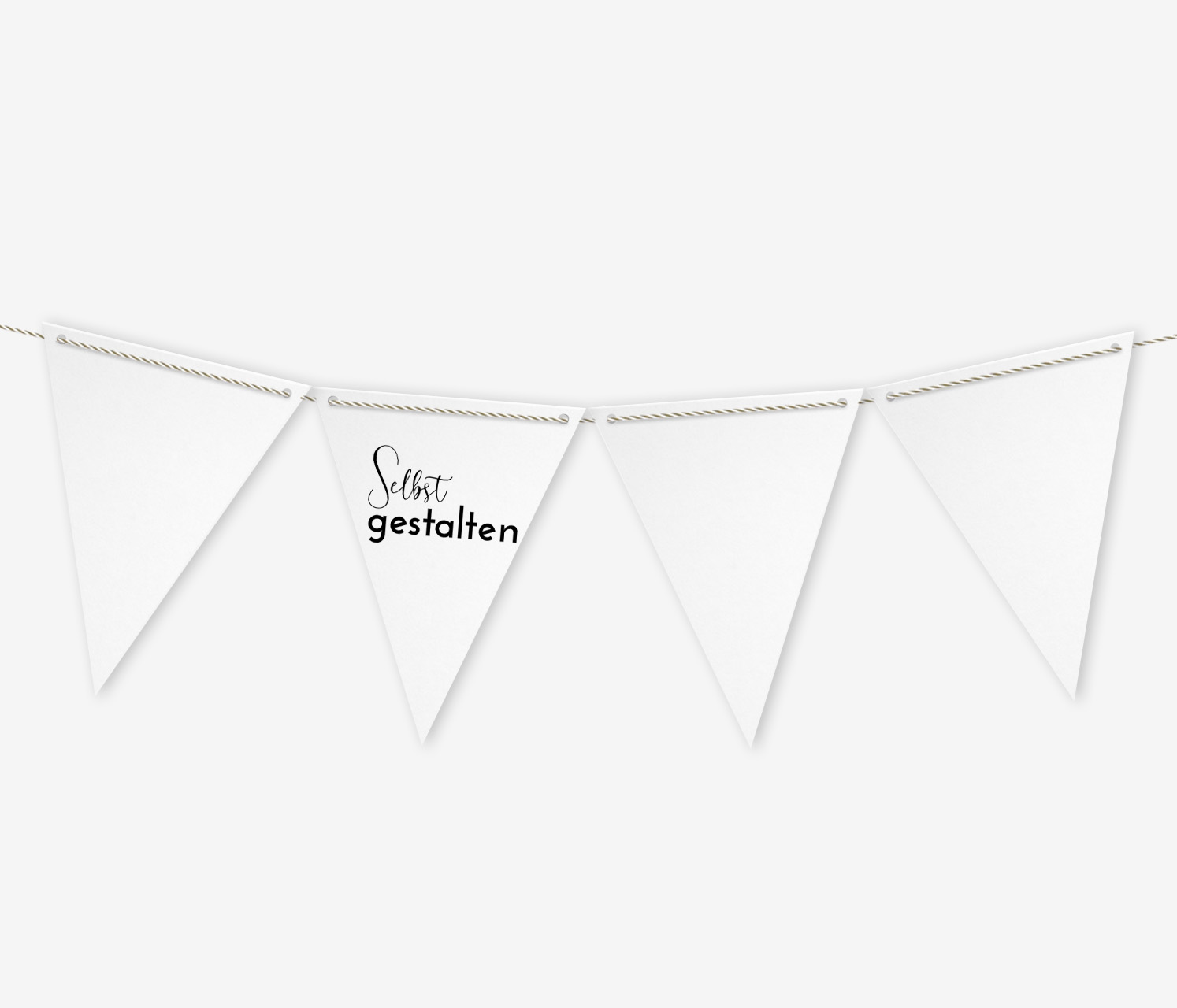 Bitte beachte: Bestelle das Befestigungsmaterial separat zur Karte. Nachdem du die gelöcherten Karten zu Hause erhalten hast, musst du sie selbst mit dem Befestigungsmaterial zusammenbasteln. Du benötigst mindestens 66 cm Schnur, um die Fahnenkette herzustellen. Auf dieser Seite findest du alle unsere Arten von Schnüren.