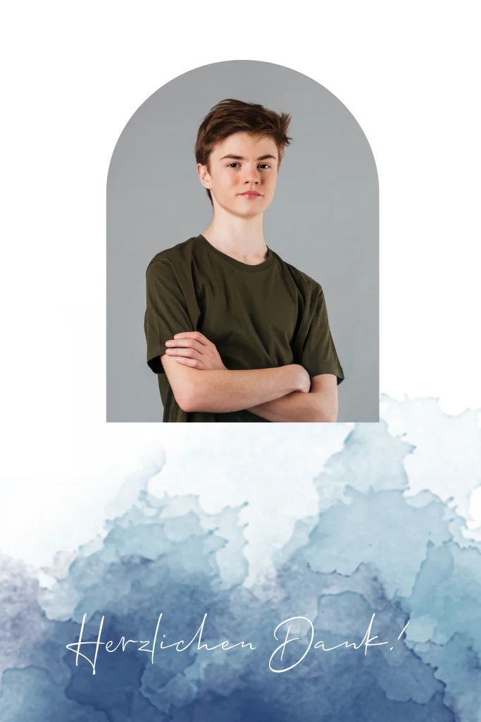 Dankeskarte zur Firmung im Aquarell-Stil mit FotoMelde dich für unseren Newsletter an und profitiere von exklusiven Angeboten, kreativen Ideen und Neuigkeiten aus unserer Produktwelt. Als Dankeschön für deine Anmeldung schenken wir dir einen kostenlosen Probedruck deiner Karte.