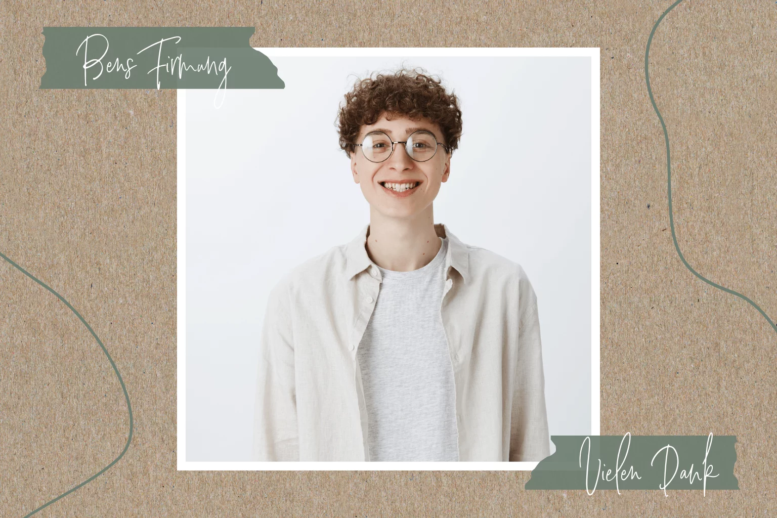 Dankeskarte zur Firmung im Kraftlook mit dunkelgrünen Linien und Foto