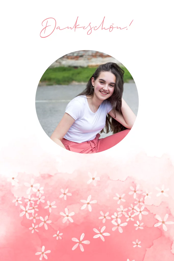 Dankeskarte Firmung mit Kranz aus Aquarellblättern und BlumenDas Design der von dir gewählten Karte wurde automatisch in andere Formate umgestellt. Wähle einfach deinen Wunschformat aus und platziere alle Texte und Elemente an der richtigen Stelle im Editor. Du hast Fragen oder dein Favorit steht nicht zur Auswahl? Dann kontaktiere uns bitte und wir werden uns gemeinsam darum kümmern!