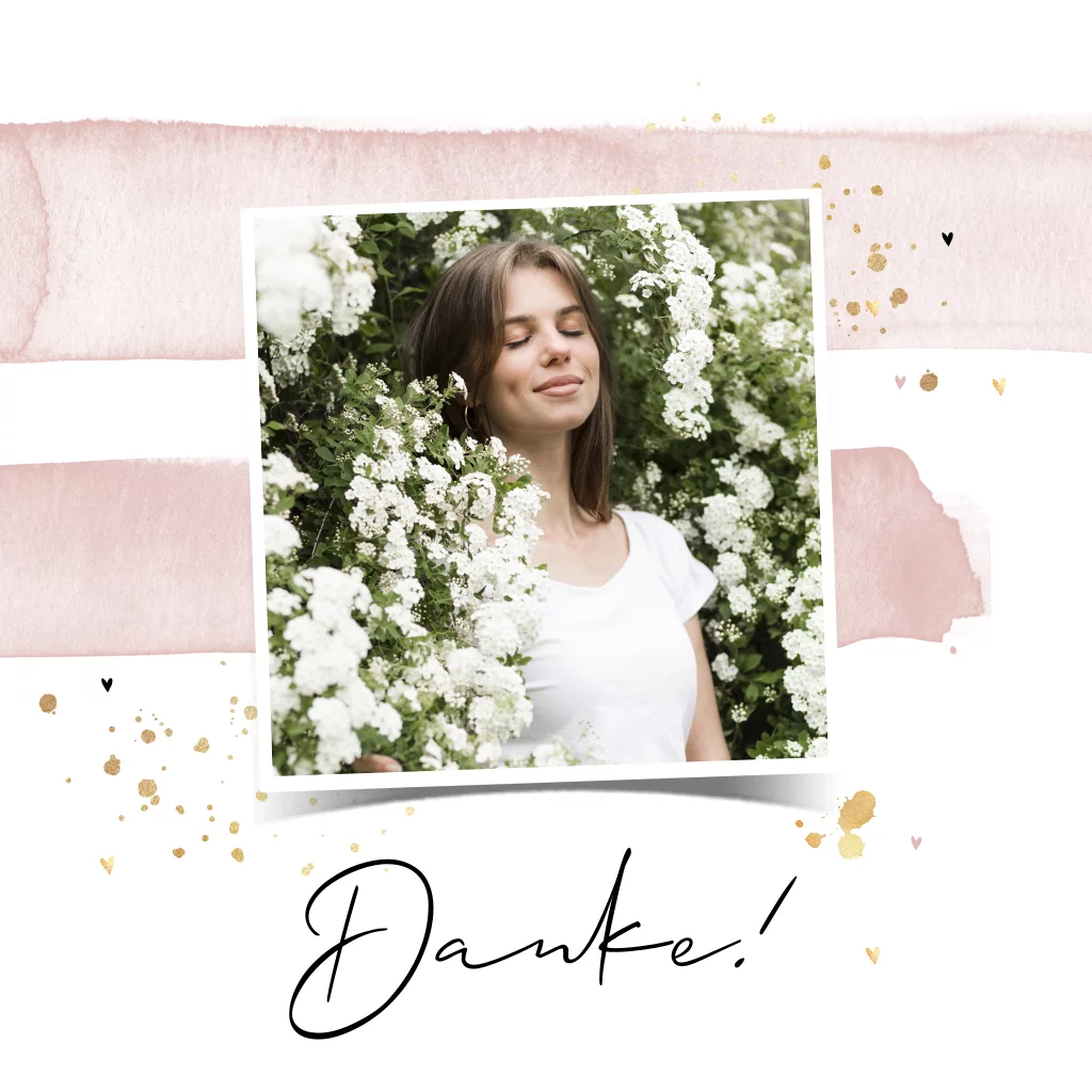 Dankeskarte zur Firmung mit rosa und goldfarbigen Aquarell und Foto Bei quadratische Karten fällt ggf. ein anderes Briefporto an. Alle Infos findest du auf der Website der Deutschen Post. Zu diesem Format erhältst du Umschläge in der Größe 14x12,5 cm. Format ändern ist möglich.Melde dich für unseren Newsletter an und profitiere von exklusiven Angeboten, kreativen Ideen und Neuigkeiten aus unserer Produktwelt. Als Dankeschön für deine Anmeldung schenken wir dir einen kostenlosen Probedruck deiner Karte.