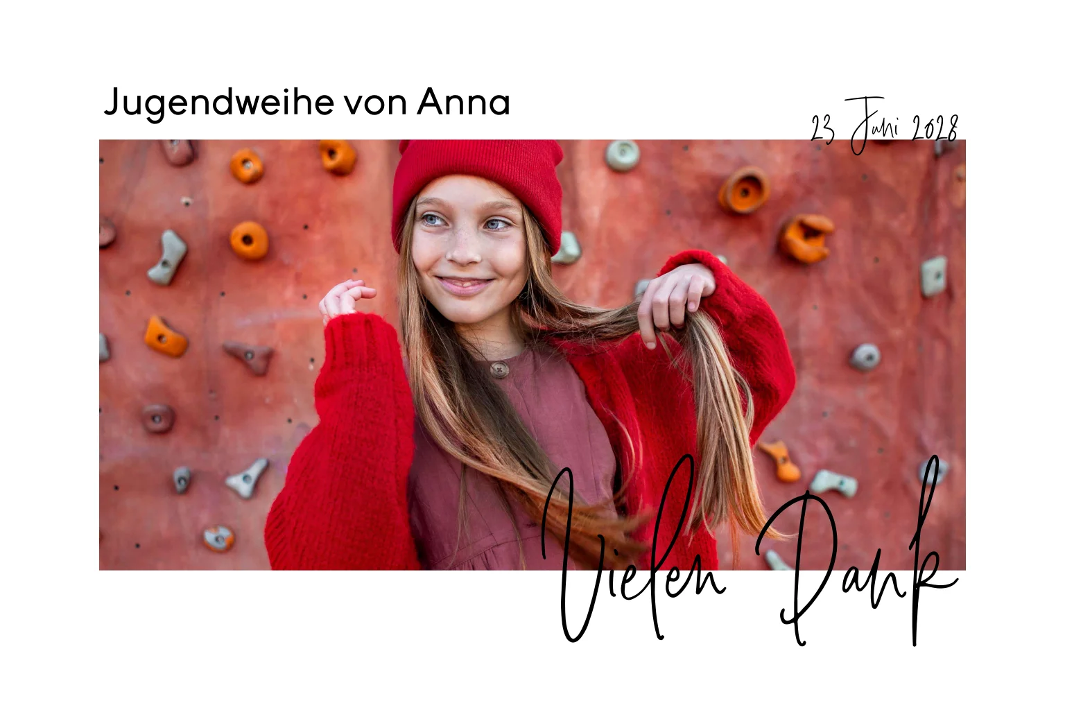 Dankeskarte zur Jugendweihe mit Foto und Kalligrafieschrift