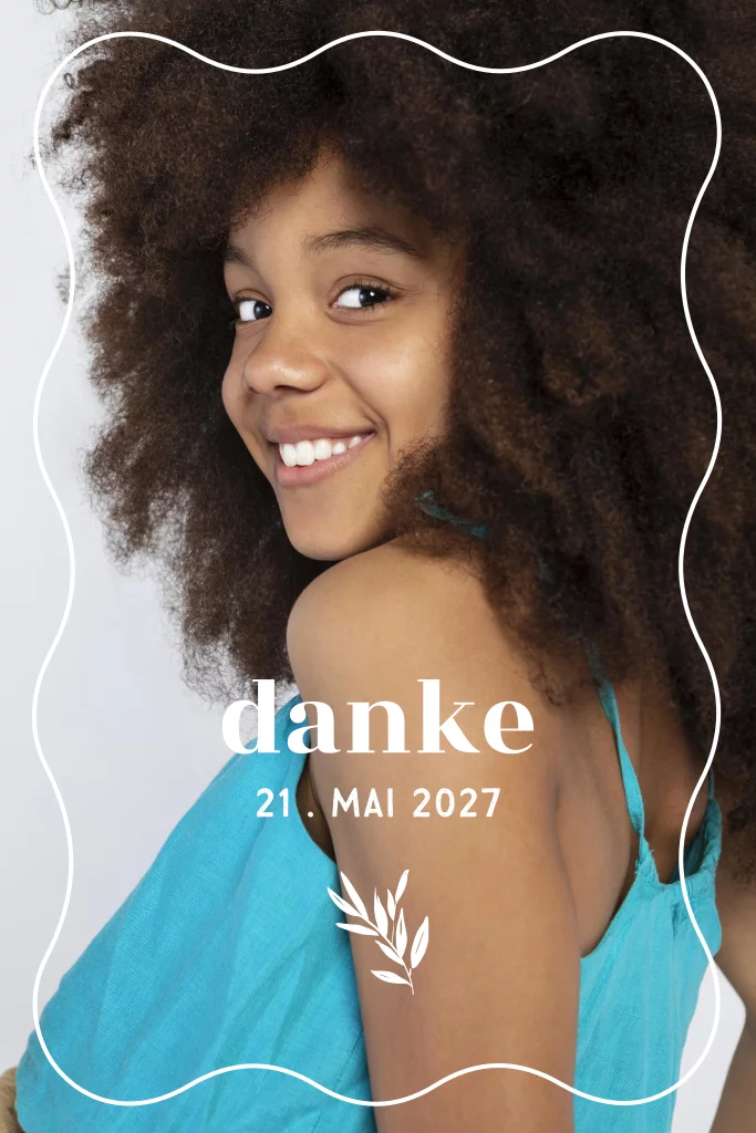 Dankeskarte Jugendweihe mit Foto auf der Vorderseite und Zweig