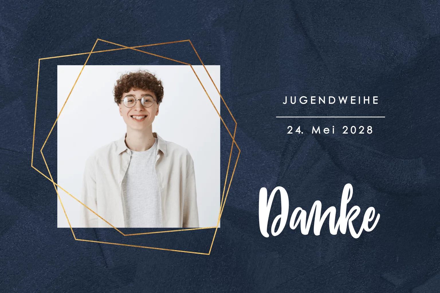 Dankeskarte zur Jugendweihe mit Foto und Velvet-Look Hintergrund