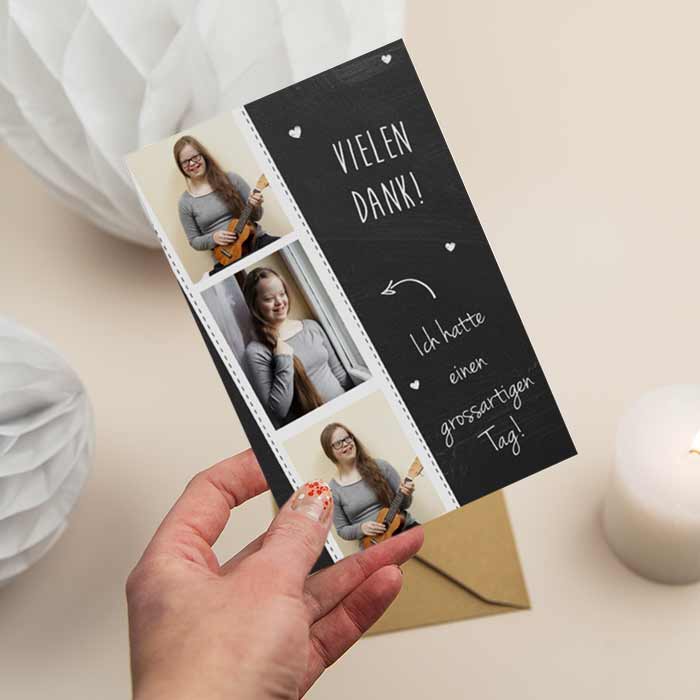 Das Design der von dir gewählten Karte wurde automatisch in andere Formate umgestellt. Wähle einfach deinen Wunschformat aus und platziere alle Texte und Elemente an der richtigen Stelle im Editor. Du hast Fragen oder dein Favorit steht nicht zur Auswahl? Dann kontaktiere uns bitte und wir werden uns gemeinsam darum kümmern!