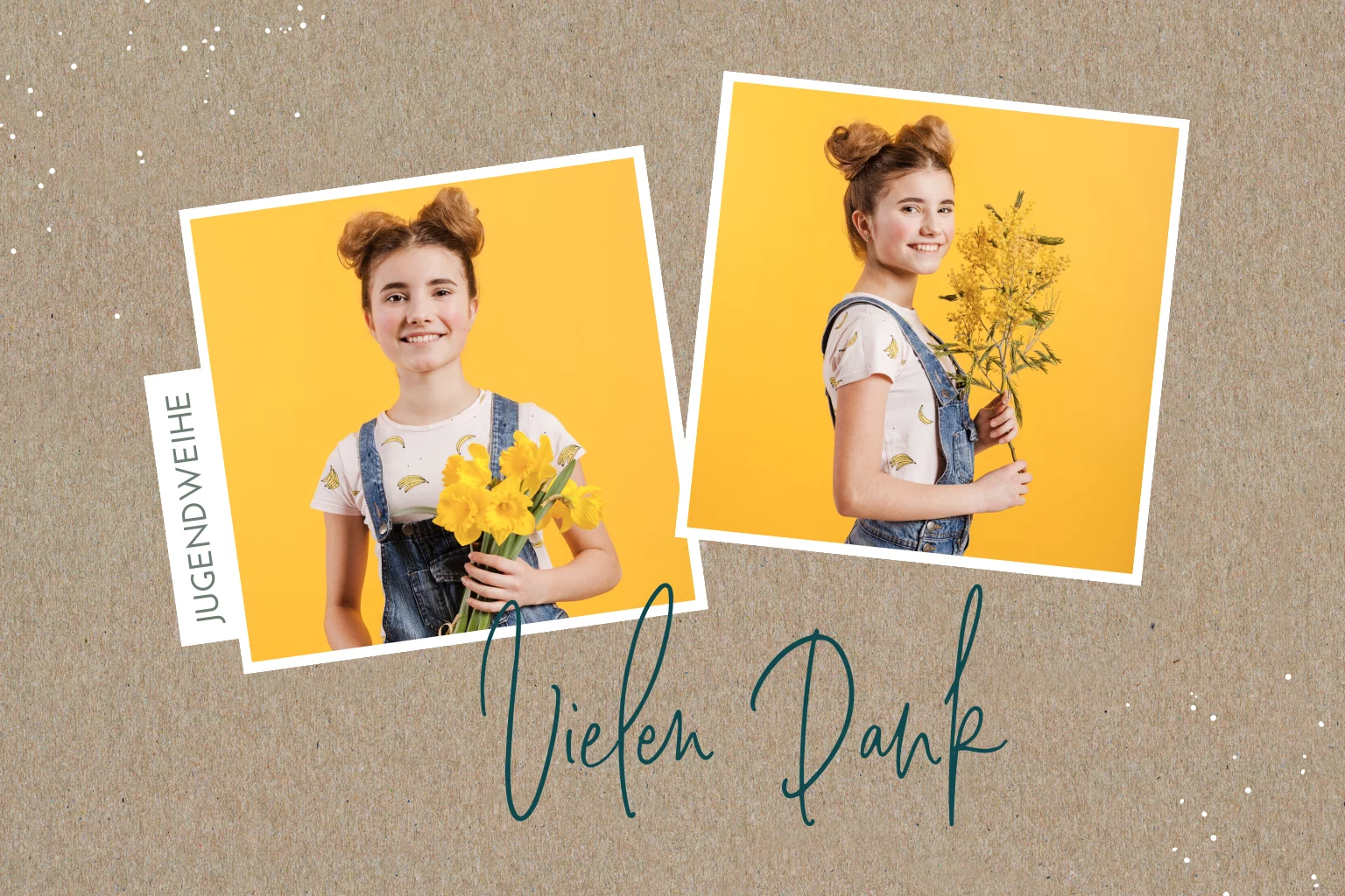 Dankeskarte zur Jugendweihe im Kraft-Look mit zwei Fotos