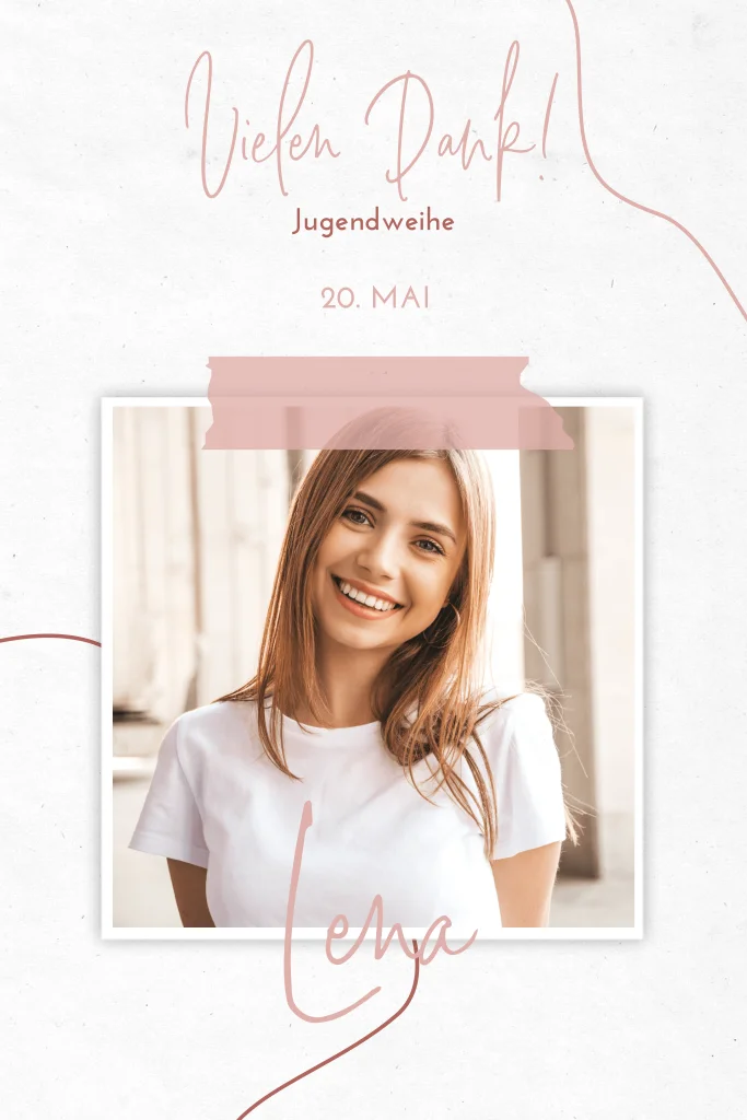 Wunderschöne Dankeskarte zur Jugendweihe mit rosa Schreibschrift