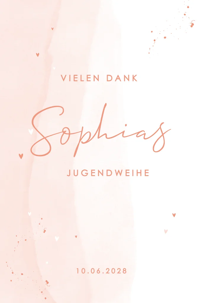 Dankeskarte zur Jugendweihe mit zarten Rosatönen und Aquarell Look