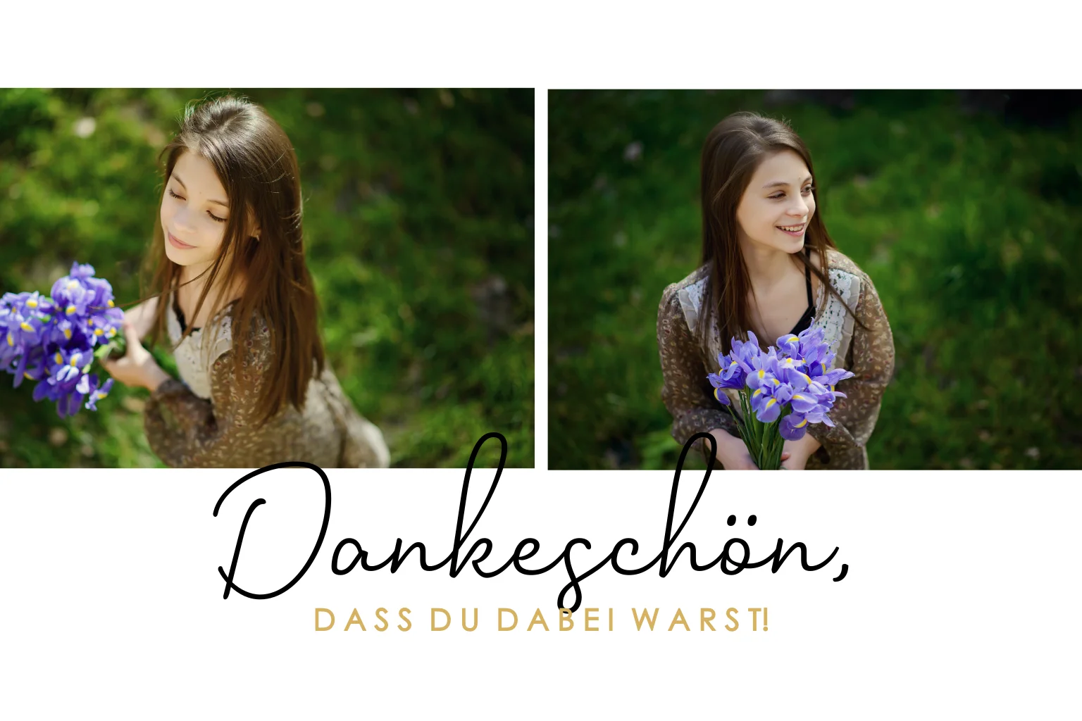 Dankeskarte mit zwei großen Fotos zur Jugendweihe