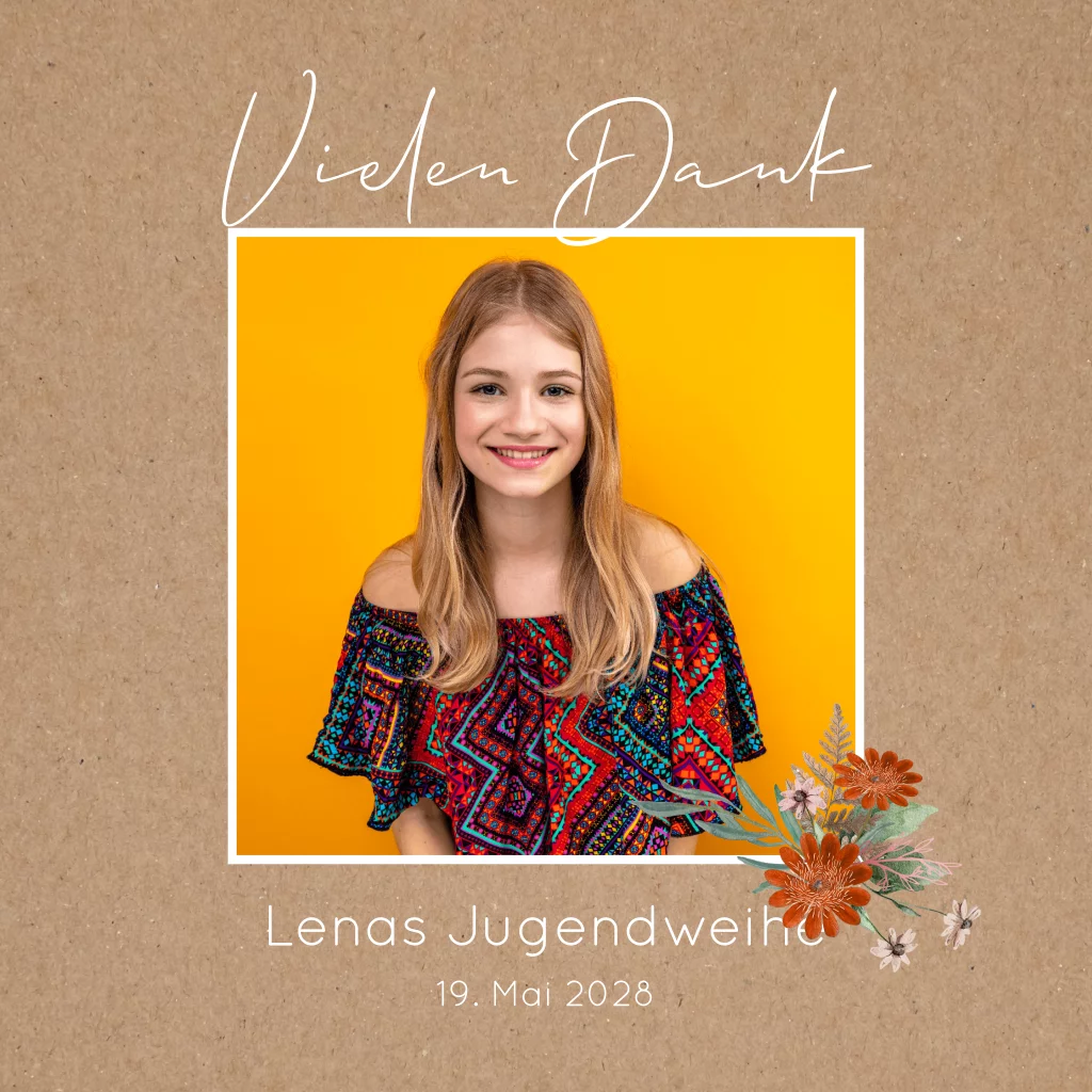 Danksagung zur Jugendweihe im Kraft-Look mit Foto und Tauben