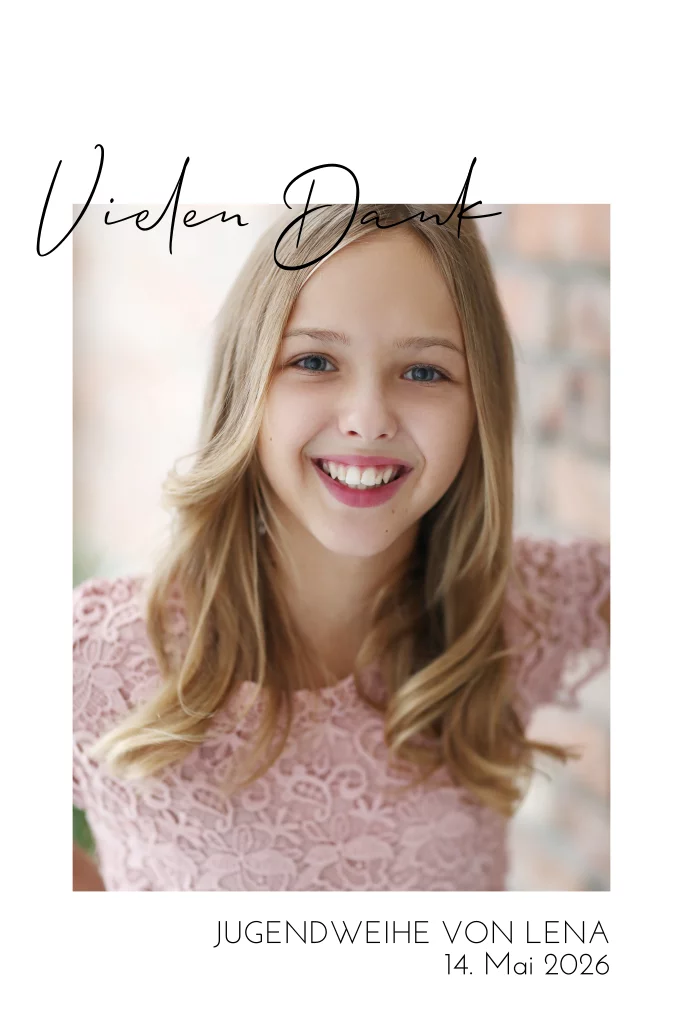 Schlichte Dankeskarte zur Jugendweihe mit großem Foto