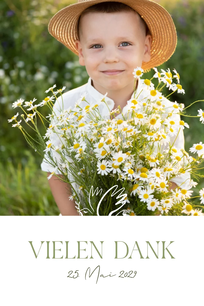 Dankeskarte Kommunion mit großem Foto und eleganter SchriftAuf der Suche nach mehr Inspiration? Sieh dir hier unsere Kommunion Dankeskarten an.