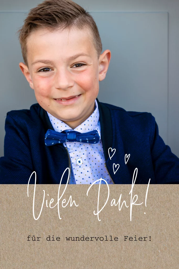 Kraftlook Dankeskarte Kommunion mit Foto und Herzen
