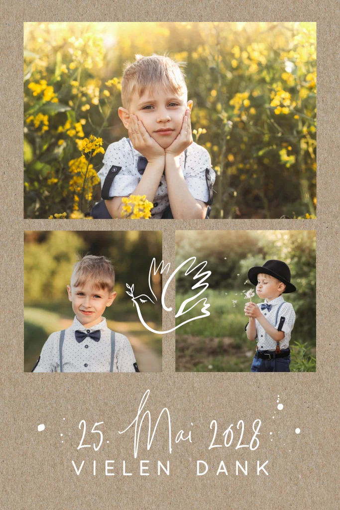 Auf der Suche nach mehr Inspiration? Sieh dir hier unsere Dankeskarten zur Kommunion an.
