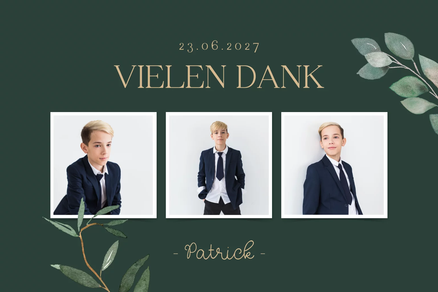 Dankeskarte Konfirmation mit 3 Fotos und Zweigen
