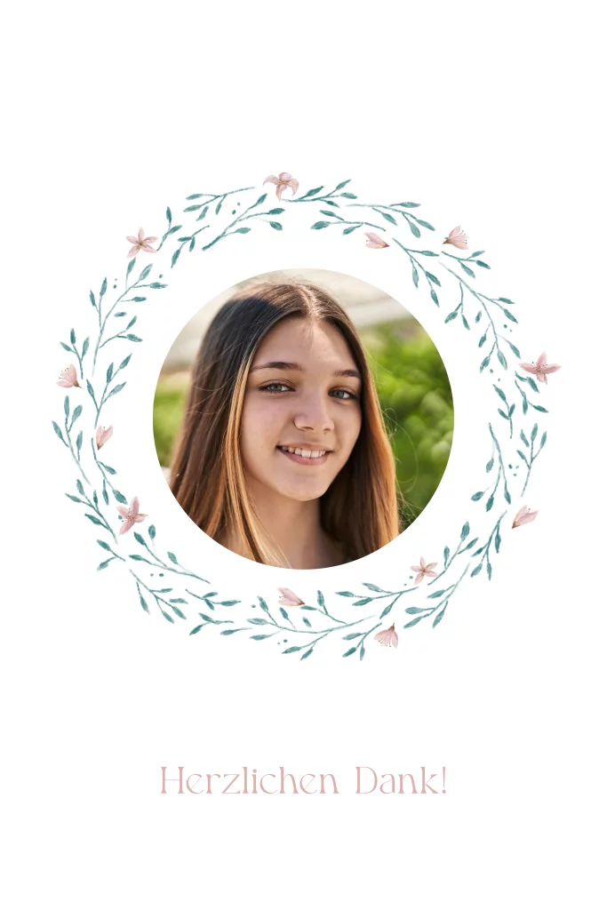 Dankeskarte zur Konfirmation mit Aquarellblumen und Foto
