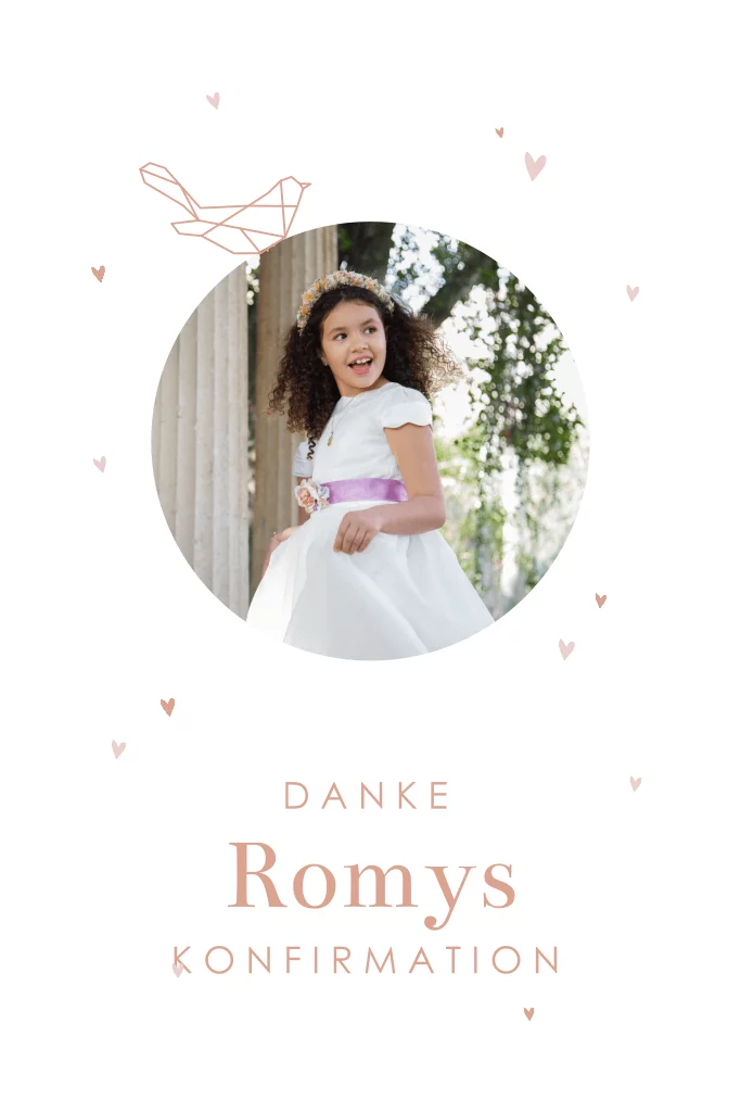 Dankeskarte Konfirmation mit geometrischen Tieren und rundem Foto
