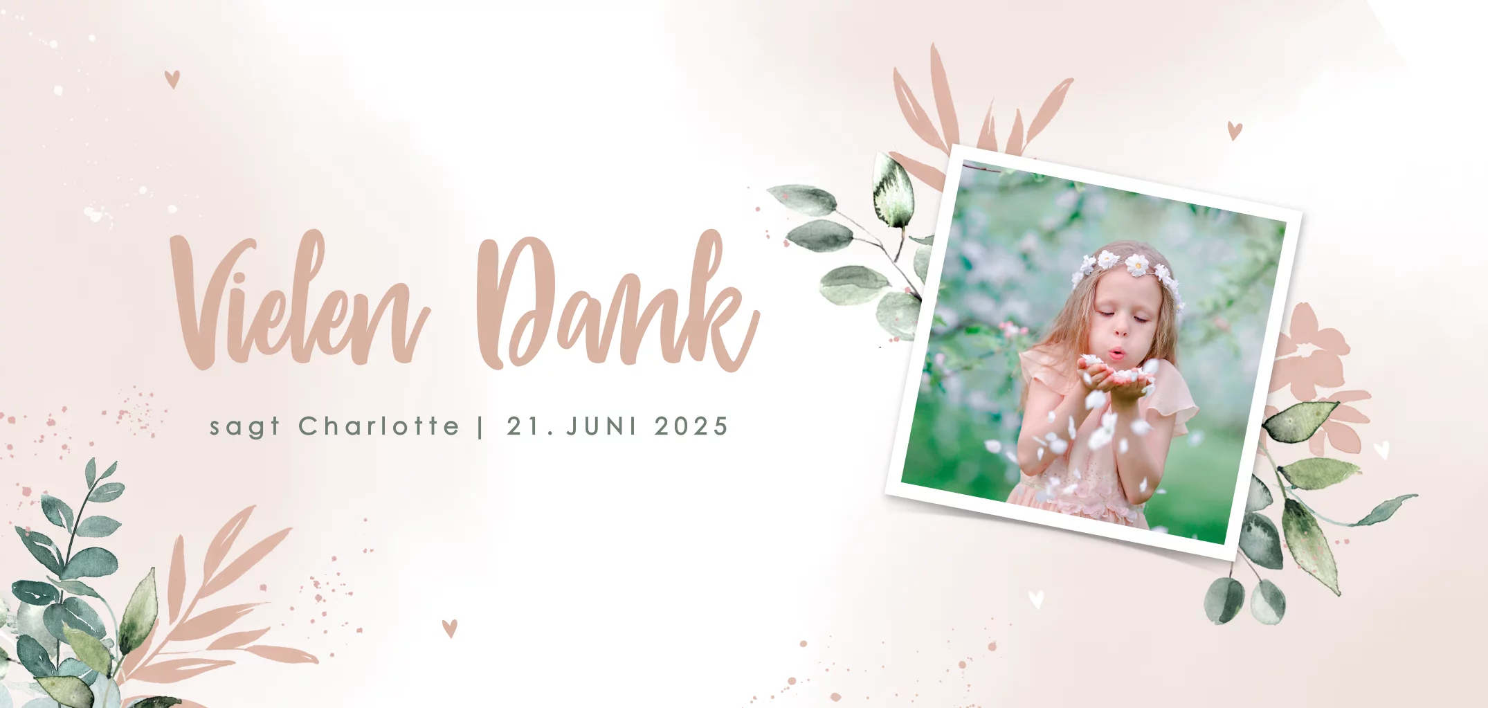 Dankeskarte Konfirmation mit Zweigen und Foto auf der VorderseiteMelde dich für unseren Newsletter an und profitiere von exklusiven Angeboten, kreativen Ideen und Neuigkeiten aus unserer Produktwelt. Als Dankeschön für deine Anmeldung schenken wir dir einen kostenlosen Probedruck deiner Karte.