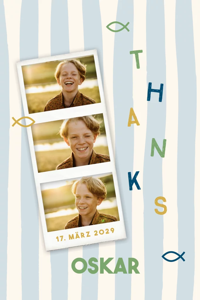 Danksagung zur Konfirmation mit Fotostreifen und Fischen
