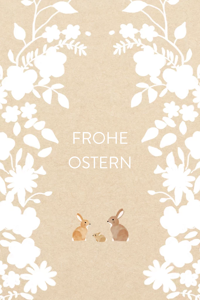 Osterkarte mit Hasen, Blumen und Goldfolie auf Kraft-look