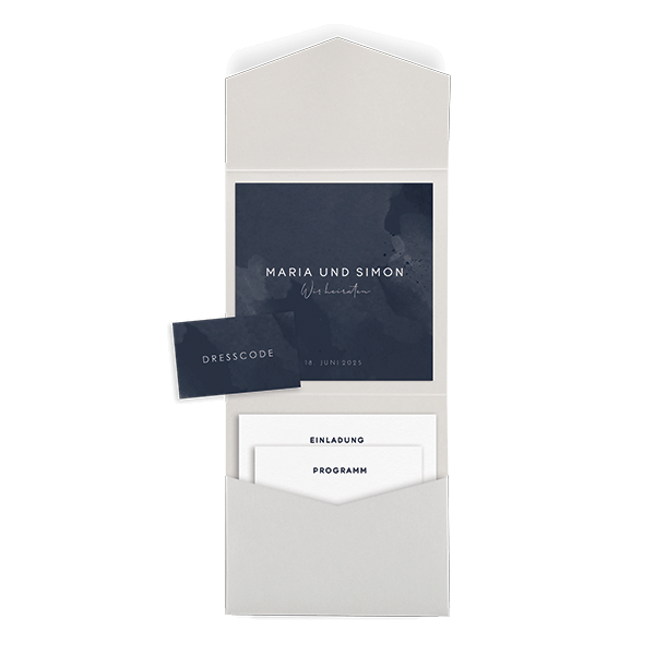 - Zu diesem Set gehört ein quadratischer Pocketfold, den du dazu bestellen kannst. Standardmäßig sind nur Karten im Set enthalten.
