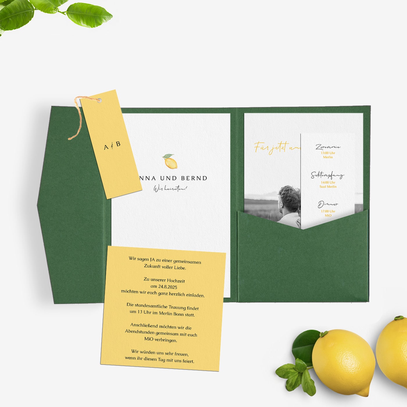 Sieh dir hier all unsere Hochzeitseinladungen mit Zitronen an.