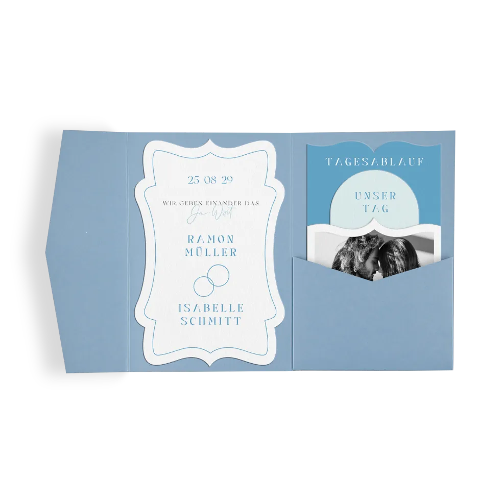 Klassischer light blue Pocketfold mit Ringen und großen Fotos