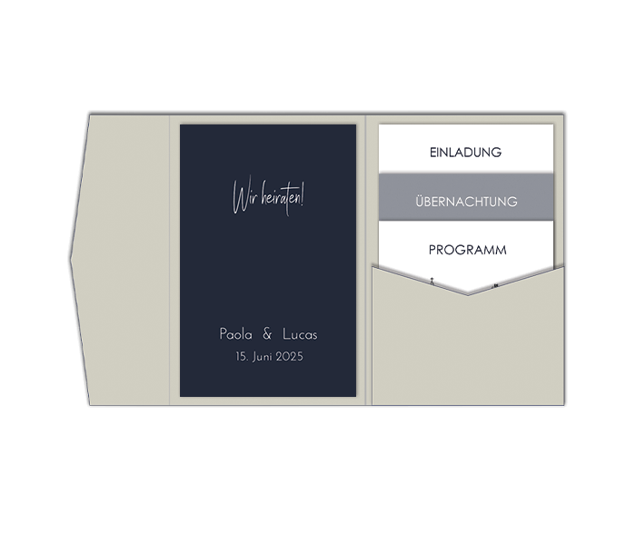 Pocketfold Hochzeitskarte minimalistisch in dunkelblau mit Foto