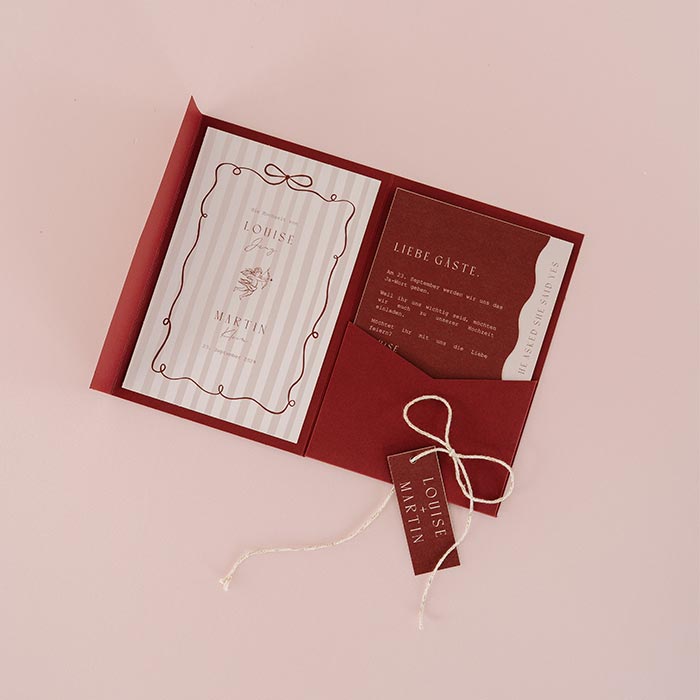 Sieh dir hier all unsere Hochzeitseinladungen mit Schleifen an.