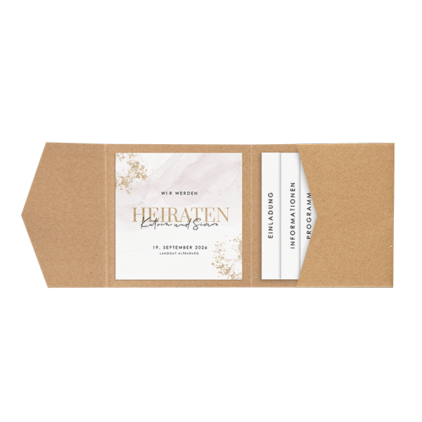 Pocketfold Kartenset als Hochzeitseinladung mit goldenen Elementen