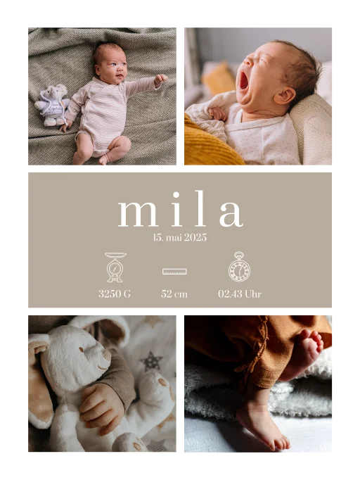 Leinwandposter zur Geburt incl Holzlatten mit Fotocollage