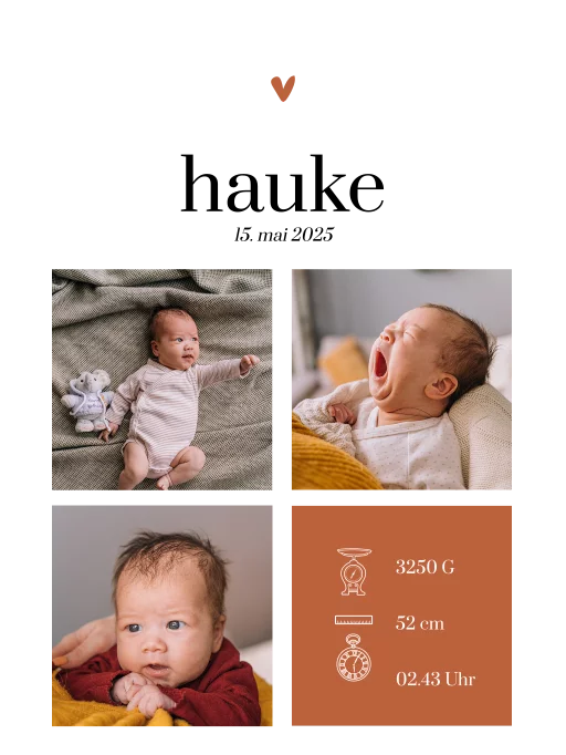 Leinwandposter Geburt incl Holzlatten mit Fotocollage und Terracotta