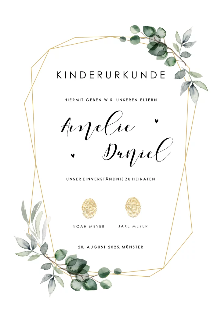 Unterschreibt an eurem Hochzeitstag auch diese inoffizielle Urkunde als Erinnerung: ein A4-Poster, das ihr später in eurem Haus aufhängen könnt. Wir empfehlen, zur Sicherheit, zwei zu bestellen.