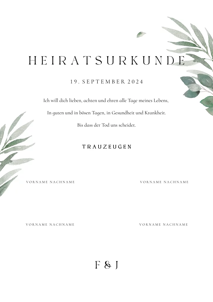 Unterschreibt an eurem Hochzeitstag auch diese inoffizielle Urkunde als Erinnerung: ein A4-Poster, das ihr später in eurem Haus aufhängen könnt. Wir empfehlen, zur Sicherheit, zwei zu bestellen.